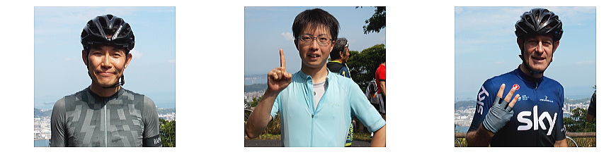 左は久しぶりに自転車に乗る阿部静香選手。中と右はオープン参加? 娘の椿ちゃんと一足先にスタートして最後にゴールした阿部パパ