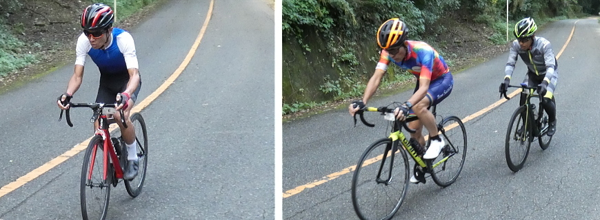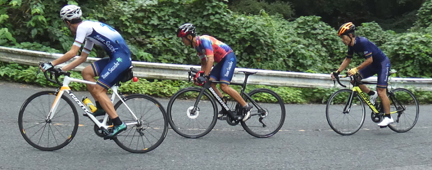 A&Nシリーズ第7戦は、9月とは思えないほどの猛暑が続く中での開催となりました。それでも山頂のゴール付近の日陰は心地よい風が吹いていました。コースのコンディションとして、路面状況はまあまあでしたが、暑さに負けずに育った雑草や木々が道路に覆いかぶさりはみ出している箇所が何か所もあるので、決して走りやすい状況ではなかったですね。