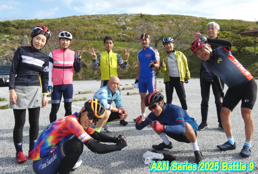 A&Nシリーズ2025の第9戦は平尾台の行橋側から攻めるヒルクライムです。集合時間の8時を過ぎても主催者の姿が見えません。携帯で連絡してみると8回コールでようやく応答あり。今どこですか?と恐る恐る聞くと「家」との返事。やっちゃいましたねぇ、寝てましたよぉ!それでスタート時間が8時半から9時3分になりましたが、無事開催することが出来てホッとしました。