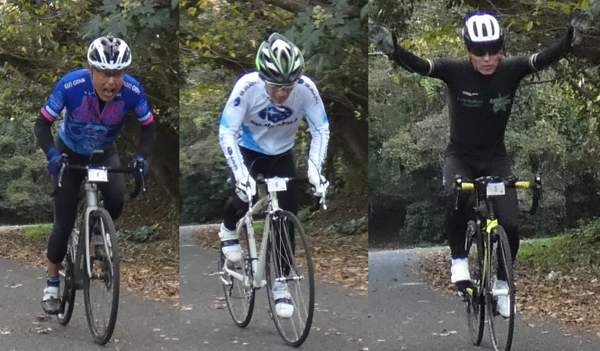それでは上位3選手の発表です・・・と言っても3選手しかいませんが、上位3名であるのは確かですから、発表したいと思います。1着は伊藤 翼 選手。今回はいつものロードバイクではなくちょっと重量のあるマルチなグラベルバイクに乗っての参加でしたが、余裕のトップで着ゴールしました。2着は古川 弘典 選手。前回に続き、連続の2着ゴールです。3着は、大金星と言っていいでしょう? 加藤 治樹 選手、ガッツリ27ポイントゲットです。